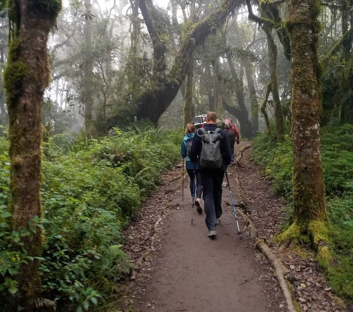 Your trek begins at Nalemoru Gate, near the Kenyan border. After registration and meeting your porters and guides, you start your ascent through lush pine forests, home to colobus monkeys and exotic birds. The trail is steady and gentle, ending at Simba Camp, located in a small clearing with views over the Kenyan plains. Overnight at Simba Camp, Meals included Breakfast, Lunch & Dinner.