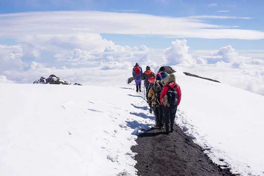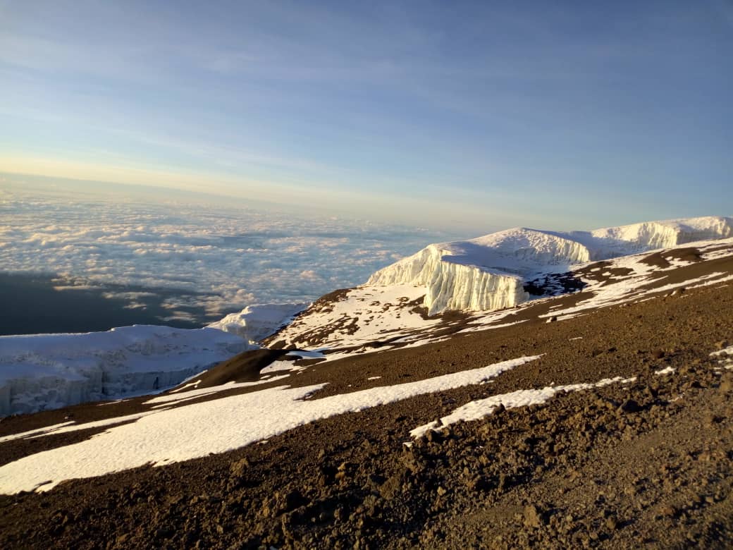 You traverse the Saddle, a lunar-like expanse of high-altitude desert that stretches between Mawenzi and Kibo. This is a long, dry, and windy day, but the gradient is manageable. You arrive at Kibo Hut, the base camp for the summit push. After an early dinner, you’ll rest as the summit climb begins around midnight. Overnight at Kibo Hut, Meals included Breakfast, Lunch & Dinner