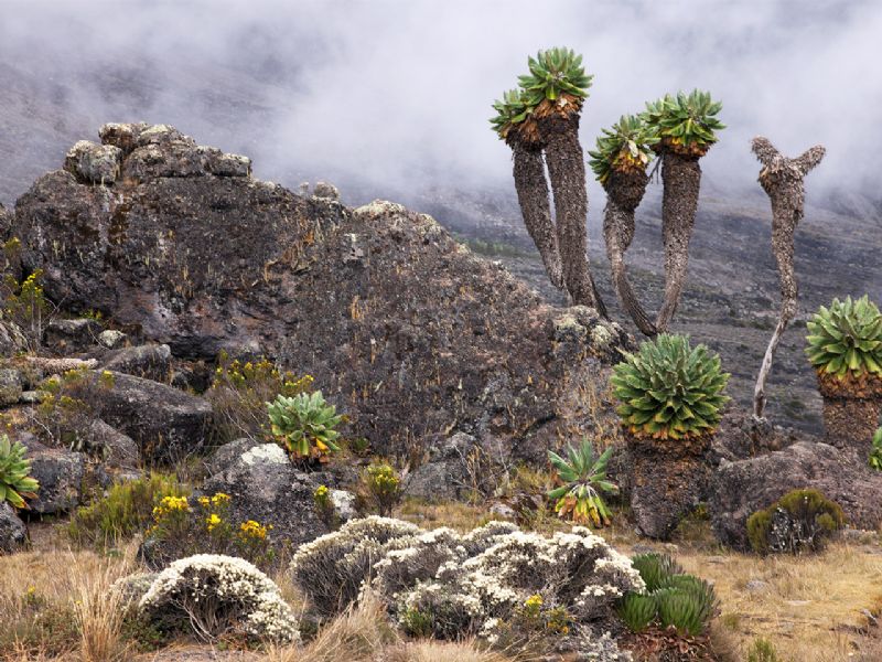 Today you ascend above the treeline, leaving the dense rainforest for the heather and moorland zone. The trail follows a steep ridge with panoramic views of Kibo and the Southern Glaciers. After a demanding climb, descend slightly into the dramatic Barranco Valley. Arrive at Barranco Camp, famous for its giant groundsels and alpine views. Overnight at Barranco Camp. Meals included Breakfast, Lunch & Dinner.