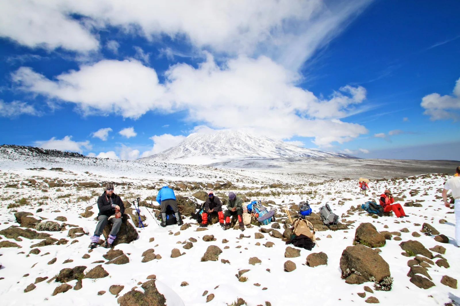 After a relaxed morning start, you’ll trek steadily uphill through rocky, windswept terrain to reach Barafu Camp—your summit base camp. With increasing altitude and colder conditions, it’s important to rest, eat, and prepare gear for the summit attempt. Early dinner followed by sleep, as your summit push begins just after midnight. Overnight at Barafu Camp. Meals included Breakfast, Lunch & Dinner