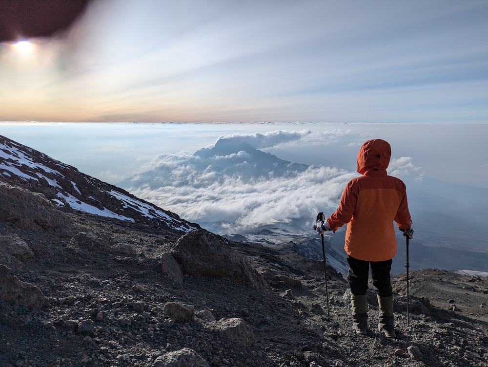 You’ll need warm layers, waterproof gear, hiking boots, a headlamp, and a warm sleeping bag. Trekking poles are very useful on the steep terrain. A detailed packing list is provided by most tour companies, and rental gear is available in Moshi.